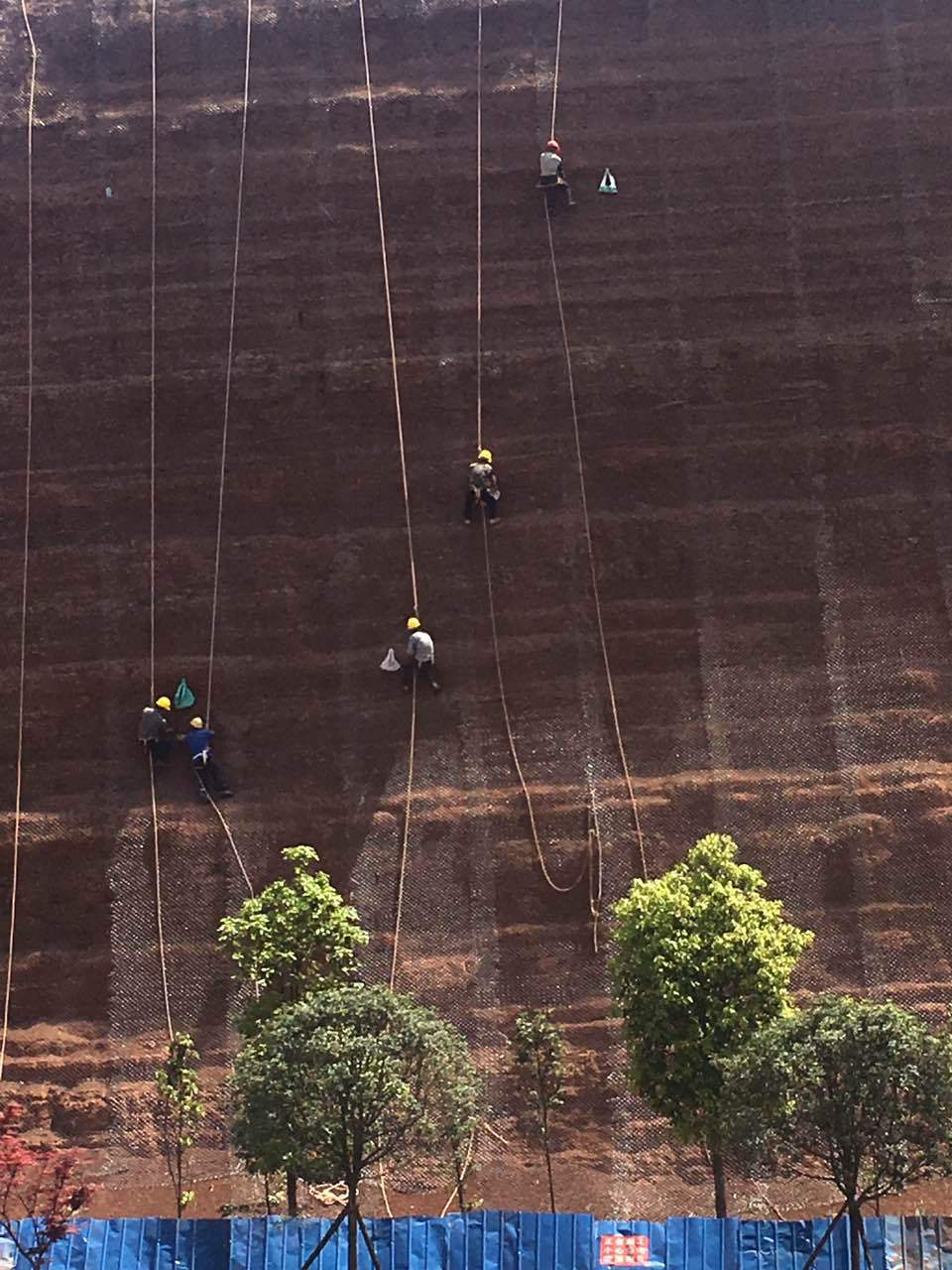 边坡绿化是一种新兴的能有效防护裸露坡面的生态护坡方式,它与传统的土木工程护坡(钢筋锚杆支护、挂网、格构等)相结合,可有效实现坡面的生态植被恢复与防护。不仅具有保持水土的功能,还可以改善环境和景观,提高保健、文化水平,边坡绿化主要分为:陡峭边坡绿化和缓边坡绿化;土质边坡绿化和石质边坡绿化。